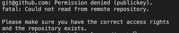 >git@github.com: Permission denied (publickey). fatal: Could not read from remote repository. Please make sure you have the correct access rights and the repository exists.