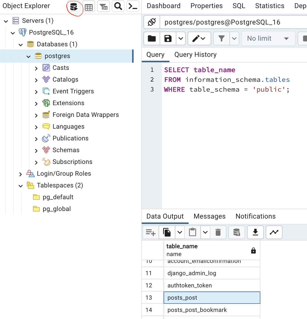 postgresql을 처음 써본다. sqlite와 다르게 이 데이터베이스는 admin4로 별도로 데이터 저장여부를 확인해야 하는데, 저장여부 확인하는 방법을 알게되어 간단히 남겨놓는다.